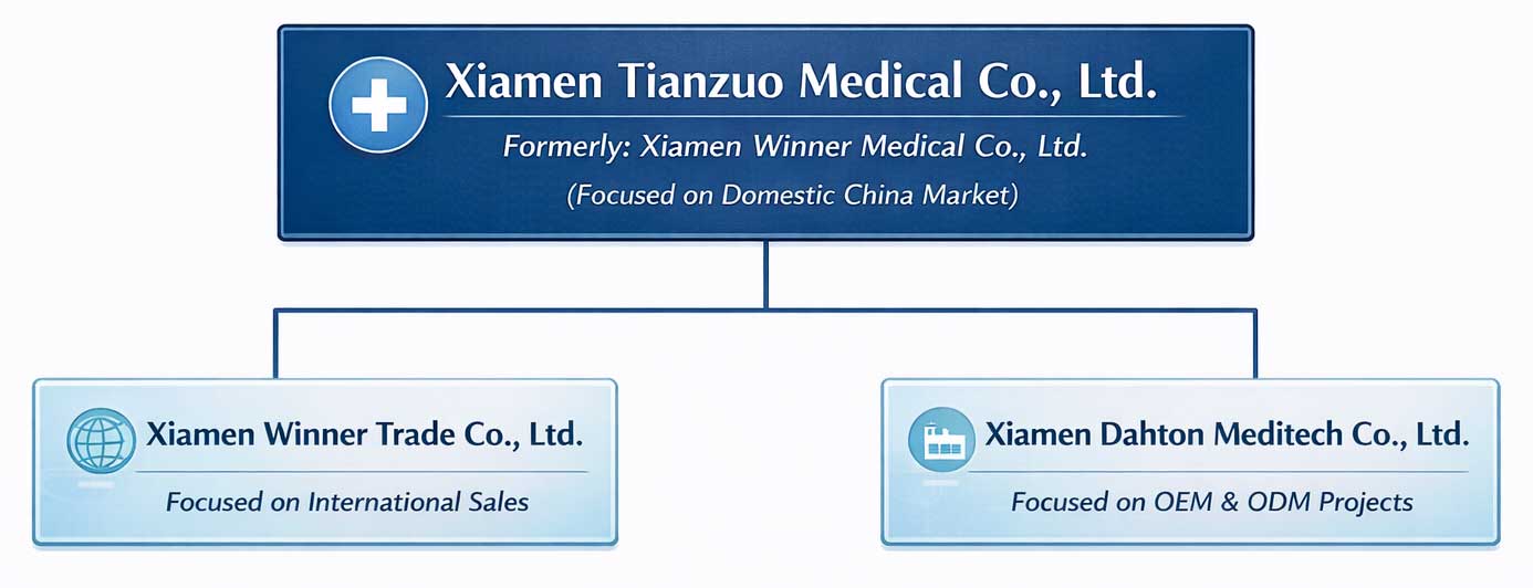 شرکت از شرکت پزشکی شیامن وینر به شرکت پزشکی شیامن تیانزو تغییر نام داد.